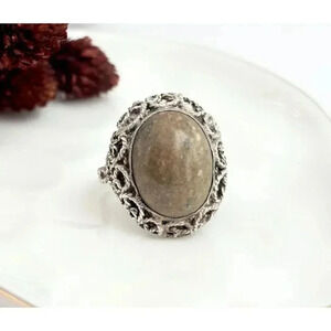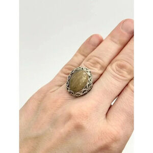 Sterling Silver Natural Agate Stone Ring - Size 7.25
