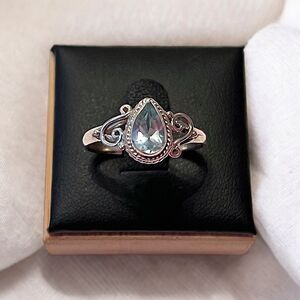 Sterling Silver Natural Blue Topaz Teardrop Ring Size 8.75 NWOT