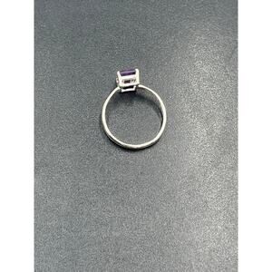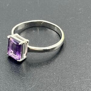 Sterling Silver Natural Emerald Cut Purple Amethyst Solitaire Ring Size 8.25
