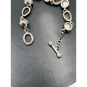 Sterling Silver Natural Pearl and Opal Gemstone Toggle Bracelet 7" 19.7g