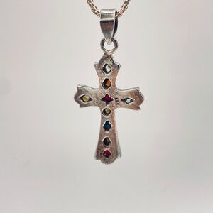 Sterling Silver Navrantha Cross Pendant and Woven Mesh Italian Chain 24”