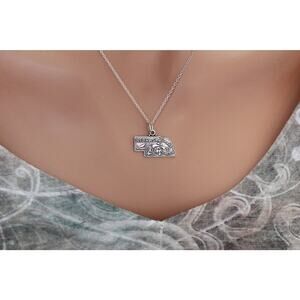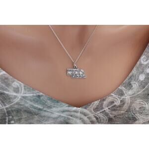 This is a Sterling Silver Nebraska State Necklace. Both the charm and the necklace are Sterling Silver.
