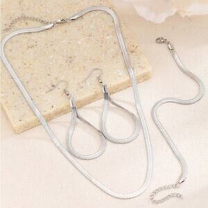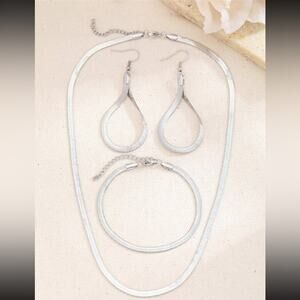 Sterling Silver Necklace Earrings Bracelet Set, Three piece Herringbone Set