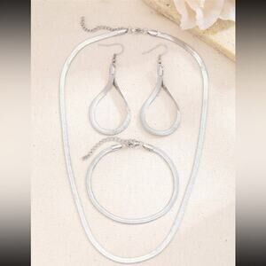 Bundle comes with three sterling silver plated pieces necklace, earrings, and bracelet.