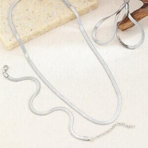 Sterling Silver Necklace Earrings Bracelet Set, Three piece Herringbone Set