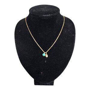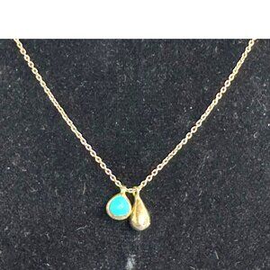 Sterling Silver Necklace Gold Vermeil Turquoise & Gold Drops Petite Vintage