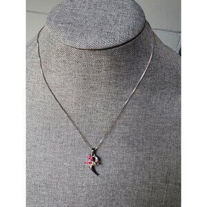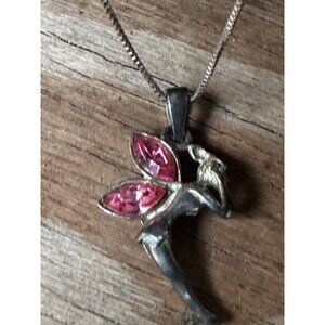 Sterling Silver Necklace With Fairy Pendant And Pink Glass Wings 18"