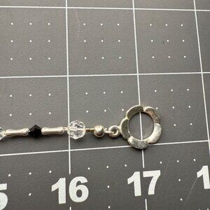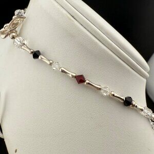 Sterling Silver Necklace With Red Black & Clear Crystal Dangle Beads Wire Wrappe