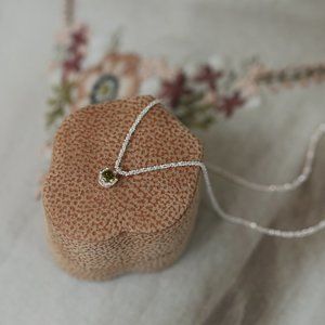New with tags Sterling Silver Olive Green Lab Tourmaline Stone Pendant Necklace