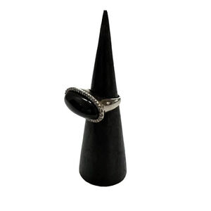 Beautiful Sterling Silver Ring with Onyx Stone surrounded by CZ stones.