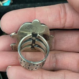 Sterling Silver Black Onyx ring Modern size 5 Made by a newer silversmith artist from Tucson, AZ.