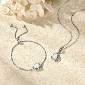 Features: Crafted in 925 sterling silver with a luminous created opal center that catches every light, showcasing beautiful rainbow colors. The adjustable box chain ensures a comfortable fit for everyday wear or special occasions. Elegant and dainty, perfect for stacking or solo wear.