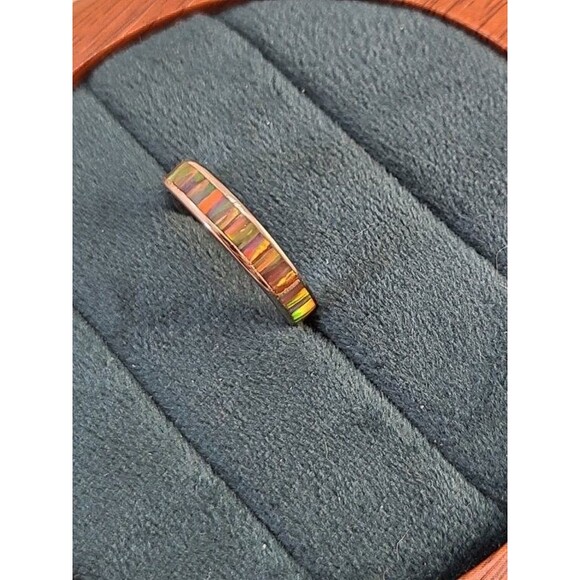 Sterling Silver Opal Inlay Band Ring 925 Size 6.5 Rainbow Mosaic Stackable Boho