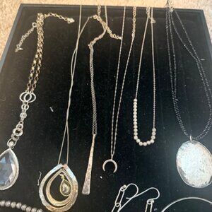 This is a BUNDLE of sterling silver necklaces, bracelets, earrings - descriptions as noted below ..... 13 pieces total.