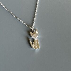 Origami fox necklace in sterling silver. This novelty pendant and dainty chain is genuine sterling silver and e-coated for anti-tarnish protection and extra durability.