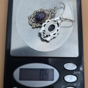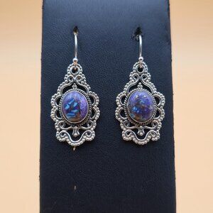 Sterling Silver Ornate Purple Turquoise Stone Earrings A5440