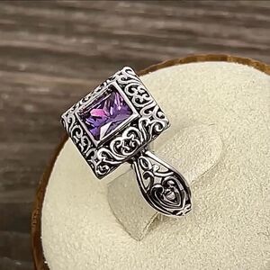 Sterling Silver Ornate Square Cut Amethyst CZ Ring New