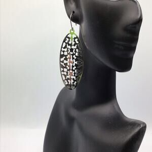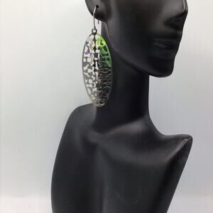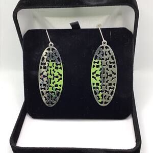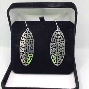 Sterling Silver Oval Cutout Dangle Earrings Hook 5.3g Modern Abstract Design