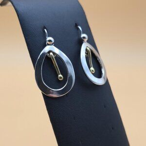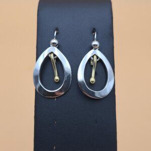 Sterling Silver Oval Heavy Two Tone Solid Dangle Earrings A4590