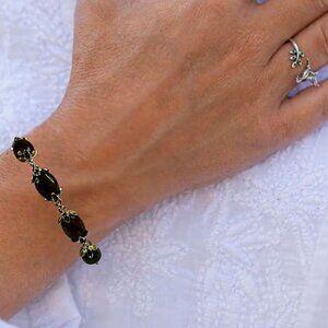 This bracelet features polished oval green stones in a sleek sterling silver setting, offering a sophisticated and timeless accessory for formal or casual wear.