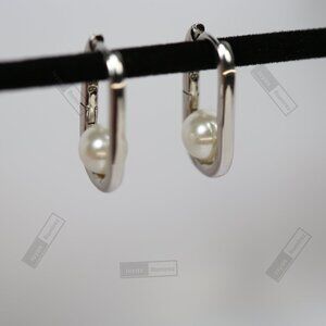 Sterling Silver Oval Pearl Earrings • Rhodium Finish • 2 cm Lightweight Design.