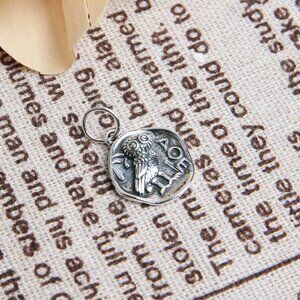 Features: Intricately detailed organic round owl coin pendant with a polished shiny back. Lightweight at just 3 grams, versatile for necklace, bracelet, or earring making. Handmade by skilled craftsman, offering a unique, artisanal vibe.