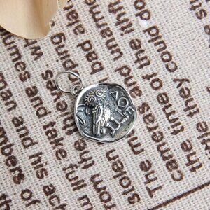 Sterling Silver Owl Coin Pendant Organic Round Charm Small Jewelry Unisex