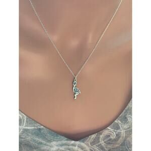 Sterling Silver Oxidized Flamingo Charm Necklace