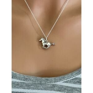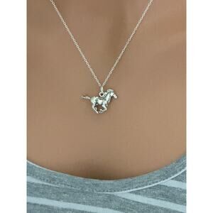 Sterling Silver Oxidized Galloping Horse Necklace, Horse Charm Necklace