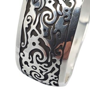 Sterling Silver Oxidized Spiral Cut Out Wide Cuff Bracelet #20760