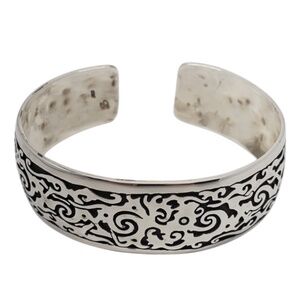 This exquisite oxidized heavy cuff bracelet features a spiral design in sterling silver.