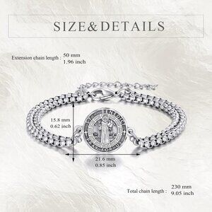Features: Crafted from high-quality sterling silver, this delicate bracelet features the Saint Benedict symbol believed to bring blessings and protection. The box chain design is subtle yet stylish, perfect for everyday wear or special occasions.