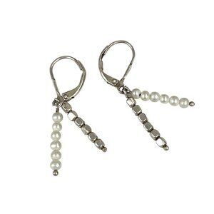 Sterling Silver & Pearl Dangle Earrings With Leverback Closure Vintage