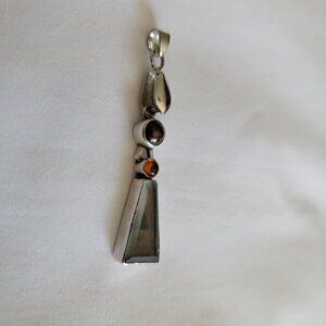 Vintage 925 Sterling Silver Pendant 3-Gem Stones JLR Design