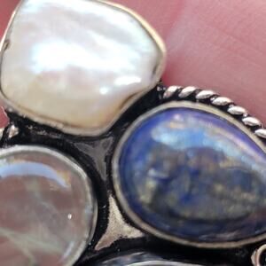 Sterling Silver Pendant Agate, Lapis Lazuli, Moonstone, & Pearl w/20-Inch Chain