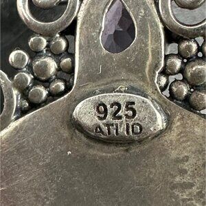 Sterling Silver Pendant Carved Goddess Face Purple Rhinestone Filigree Statement