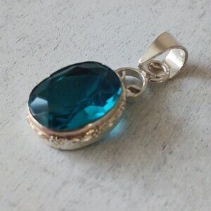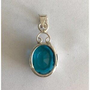 Sterling Silver Pendant Faceted Blue Topaz Quartz Glass