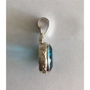Sterling Silver Pendant Faceted Fx Blue Topaz Quartz Glass