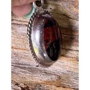 Sterling Silver Pendant With Oval Onyx Red Jasper Gemstone Cabochonn reversible