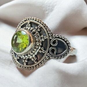 Peridot gemstone gem tested for authenticity. Sterling silver acid tested for authenticity.