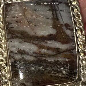 Sterling silver Picasso jasper cabochon rectangular pendant with cable chain design on the side. This pendant is 1 3/4” tall and 1” wide. Brand new jewelry, handmade, nickel and lead free.