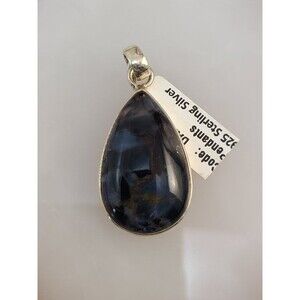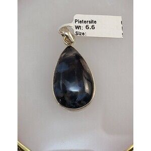 Sterling Silver Pietersite Pendant Teardrop Gemstone 925 Swirling Blue & Gold