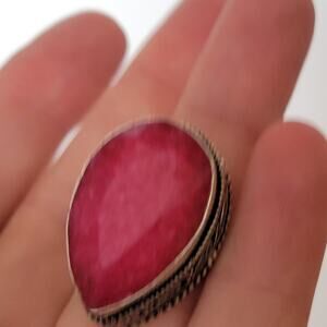 Elevate your style with this exquisite sterling silver ring featuring a stunning pink agate stone. The vibrant pink hue and unique natural patterns of the agate are beautifully enhanced by the detailed silver band, creating a captivating statement piece.