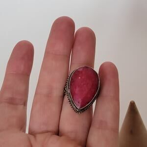 Sterling Silver Pink Agate Ring – Bohemian Statement Jewelry – Size 8.5