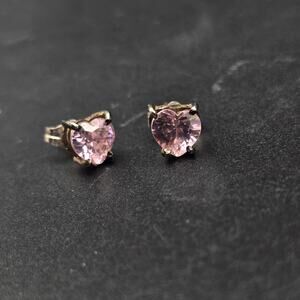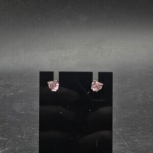 Sterling Silver Pink CZ Heart Stud Earrings Posts 925