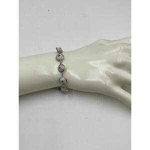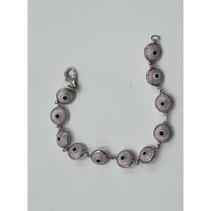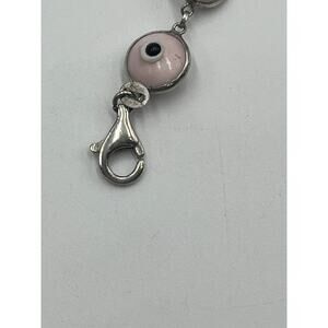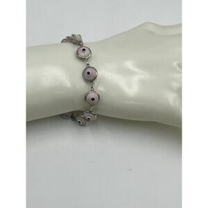 Sterling Silver Pink Glass Evil Eye Protection Lucky Bracelet 7.25”