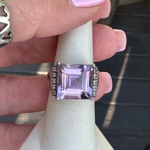 Solid sterling silver and simulated diamonds.