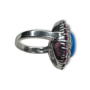 Sterling Silver Pink Tourmaline White Spinel Lapis Ring Size 6.25