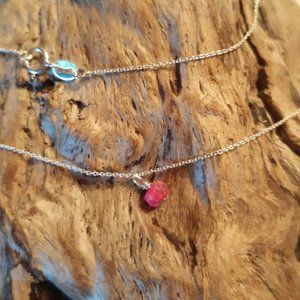 Sterling Silver Pink Welo Opal Drop Necklace 16", created with a 6mm faceted pink Ethiopian Welo Opal bead and sterling silver components. Questions? Leave a comment below!