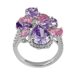 Sterling Silver Pink and Lavender CZ Cluster Ring New